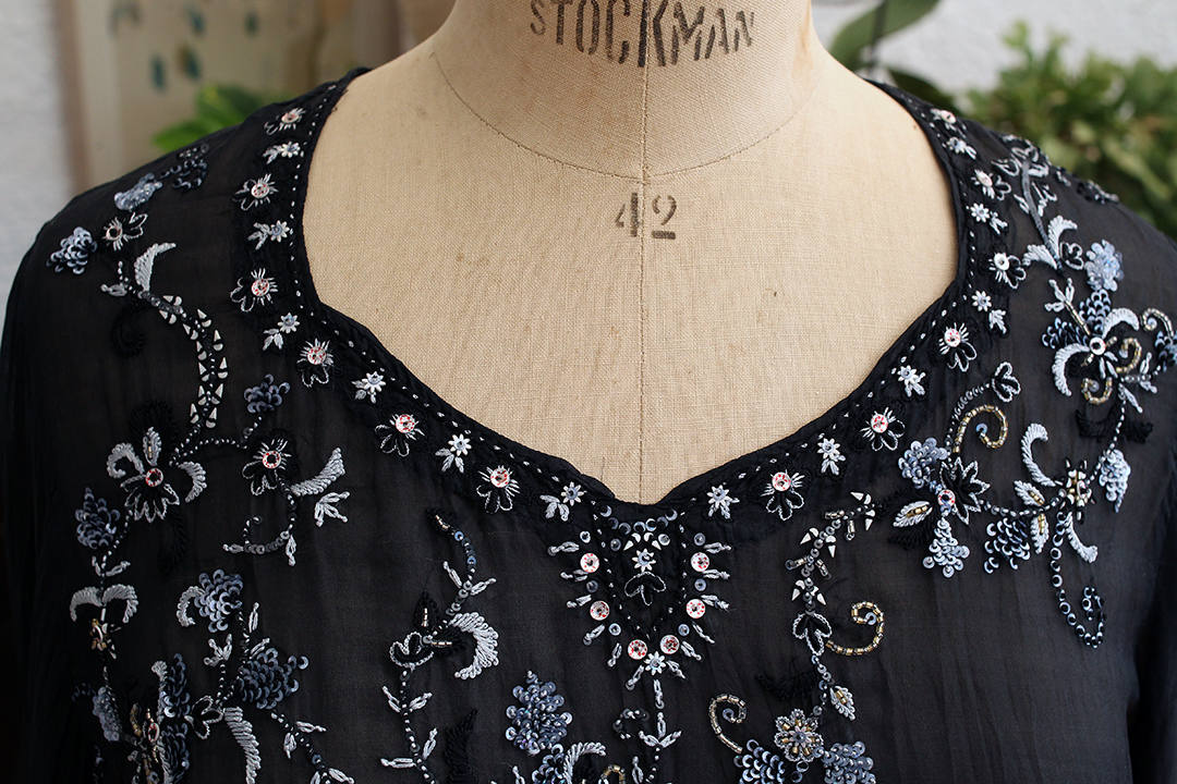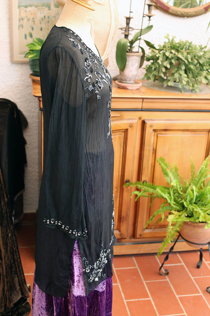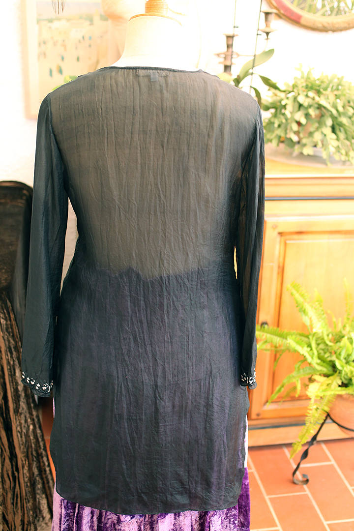 90’s Silk Embroidered Black Sheer Summer Tunic
